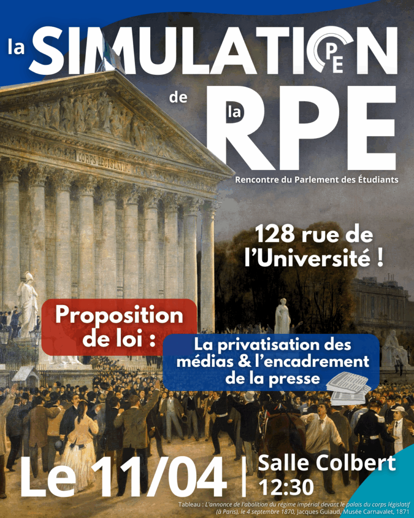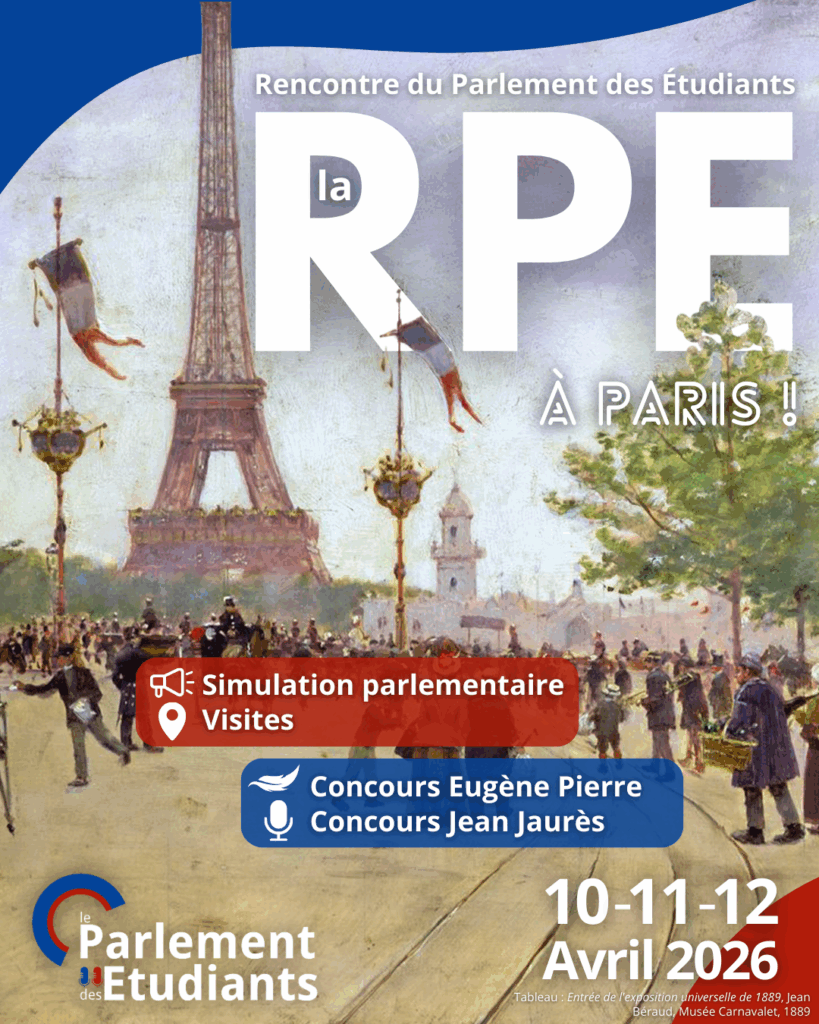 Le Parlement des Étudiants est une fédération associative qui, à travers des simulations parlementaires, des conférences, des visites institutionnelles et des rencontres avec des acteurs de la vie publique, œuvre à la promotion du débat démocratique et à une meilleure compréhension du fonctionnement des institutions.