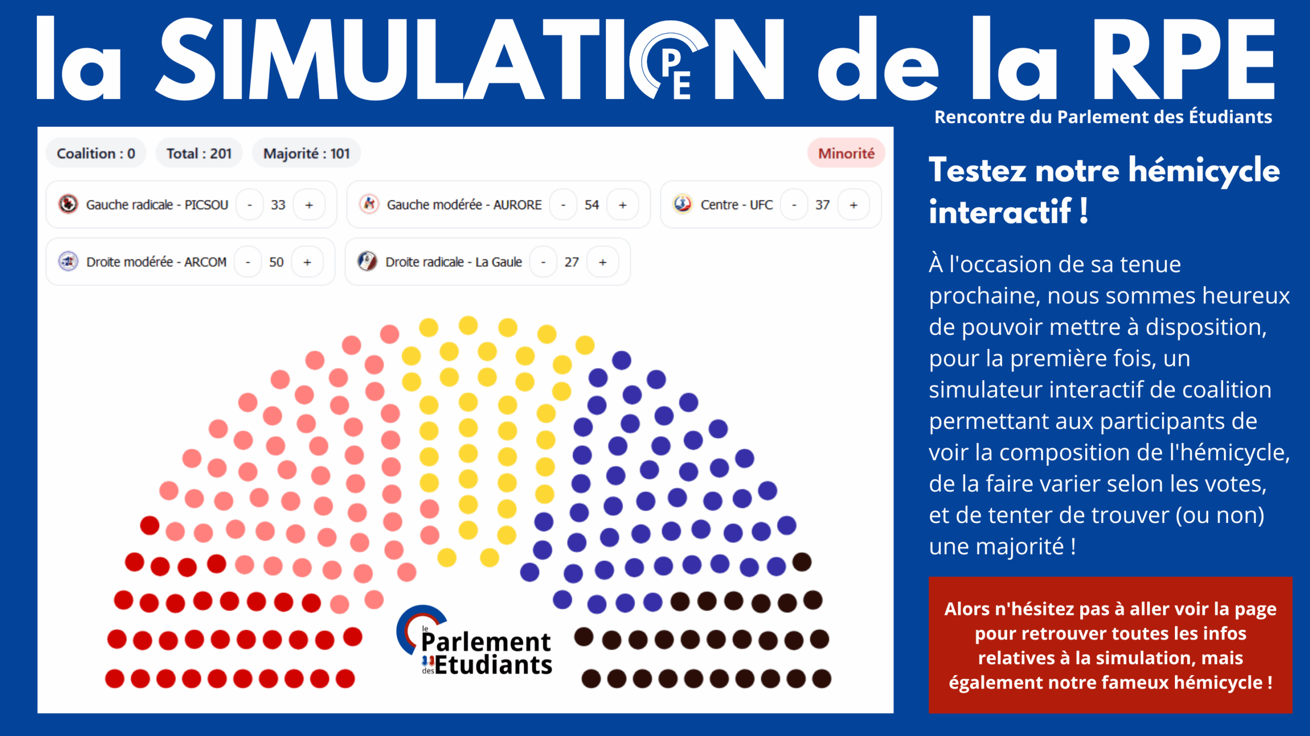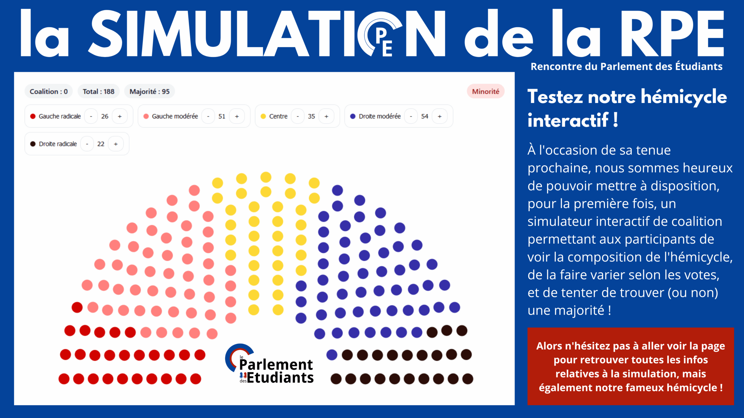 Le Parlement des Étudiants est une fédération associative qui, à travers des simulations parlementaires, des conférences, des visites institutionnelles et des rencontres avec des acteurs de la vie publique, œuvre à la promotion du débat démocratique et à une meilleure compréhension du fonctionnement des institutions.